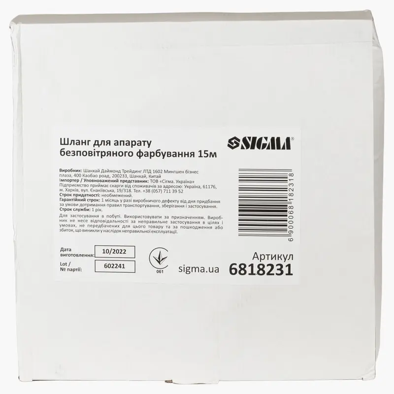 Шланг для апарату безповітряного фарбування 15м SIGMA (6818231)