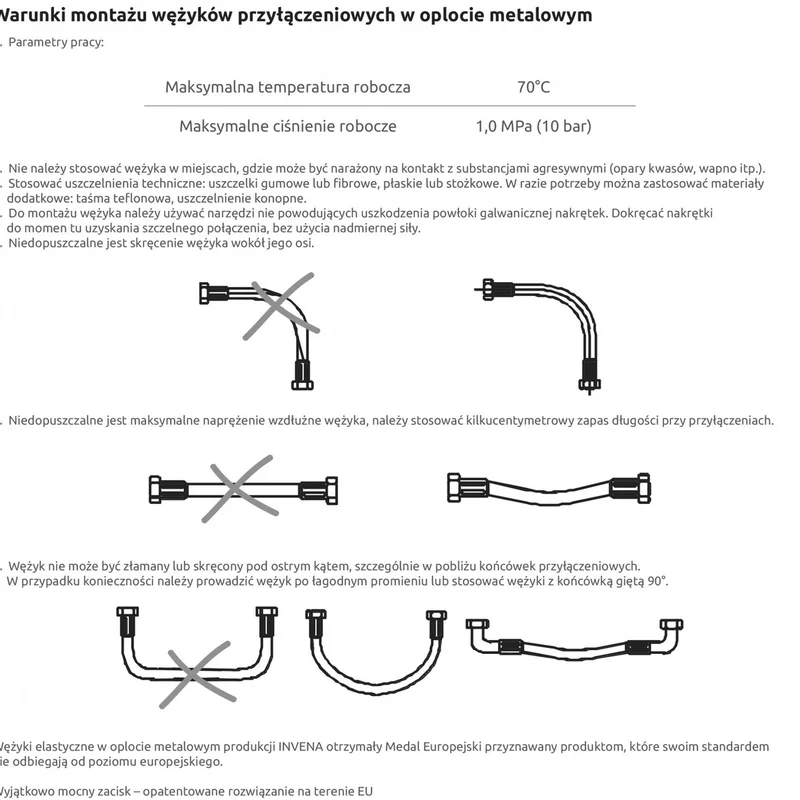 Шланг для води в оплетінні з нерж. сталі , в/з, 1/2хМ10, 60 см, коротка голка, Invena WS-23-060