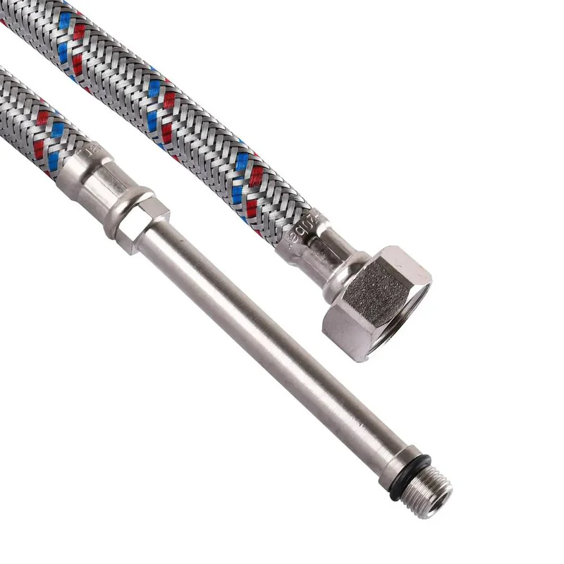Застосовуються для підключення як і холодного, так і гарячого водопостачання. Червоні і сині нитки, вплетені в оплетку, свідчать про можливість використання гнучкого шланга для гарячої та холодної води.