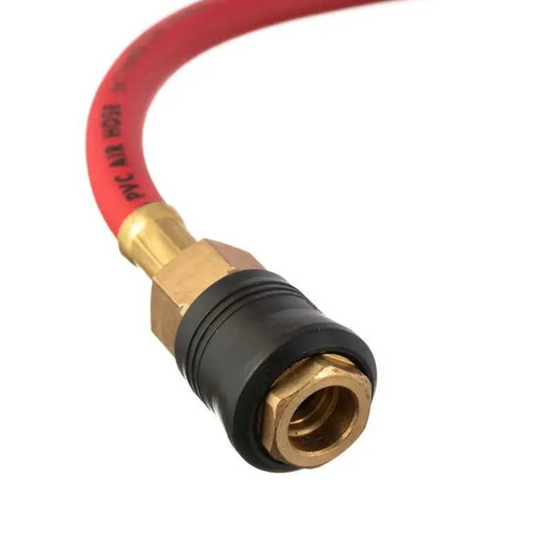 Шланг легко підключається до системи за допомогою швидкороз'ємних з'єднань європейського типу, вони герметичні та дозволяють швидко під’єднати пневмоінструмент до компресора. Виготовлені з'єднання з латуні, мають ряд переваг перед сталевими фітингами. Характеризуються крущою стійкістю до корозії, мають більший строк експлуатації, довговічніші.