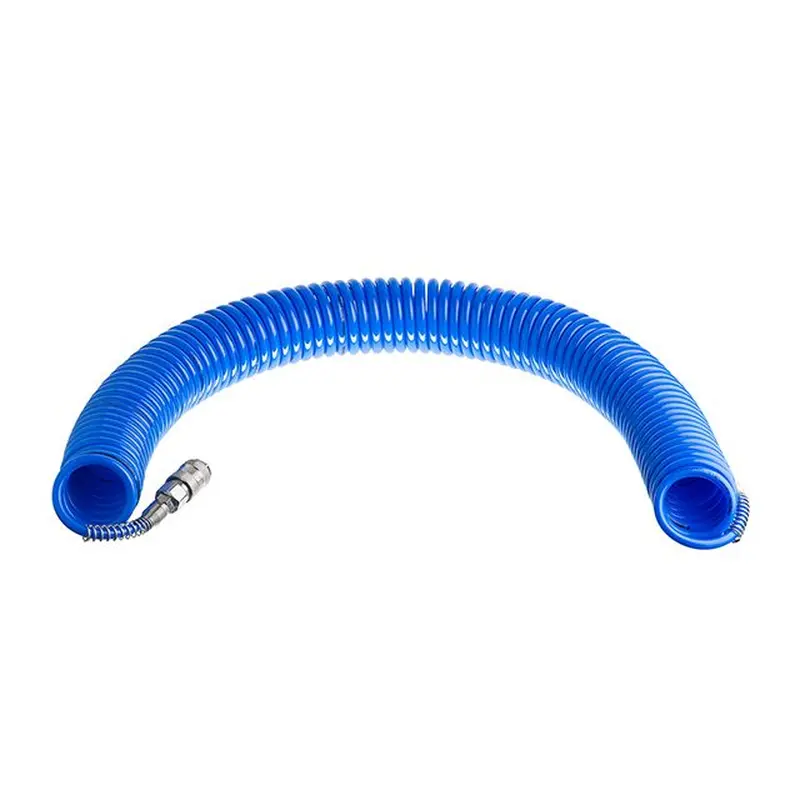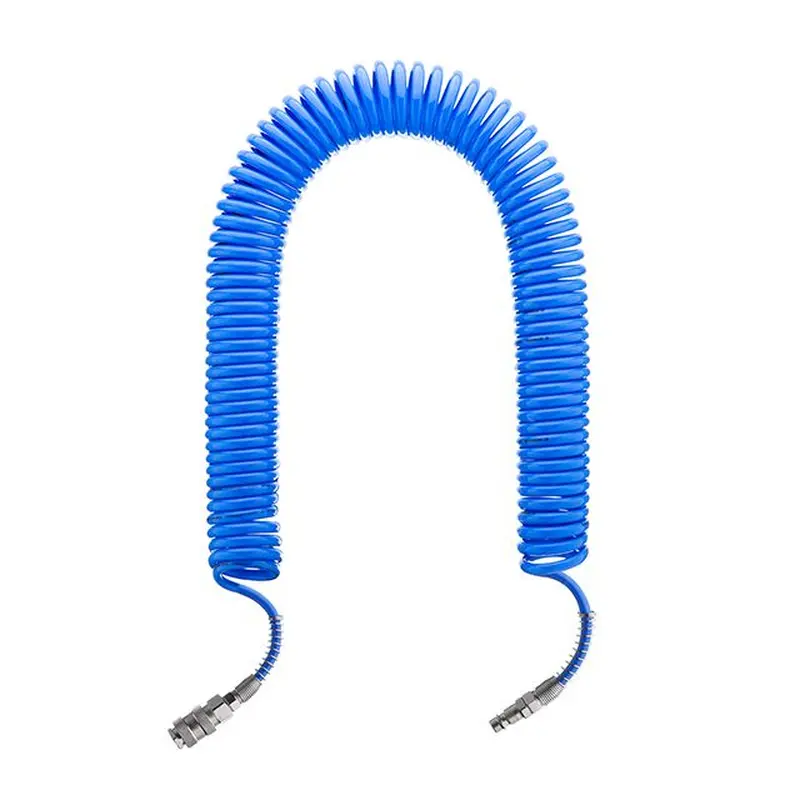 Шланг дуже гнучкий, здатен розтягуватись до 15 метрів під час роботи. Навіть під навантаженням він продовжує зберігати свою спіральну форму, тому вам не потрібно турбуватися про те, щоб скрутити його після закінчення роботи.