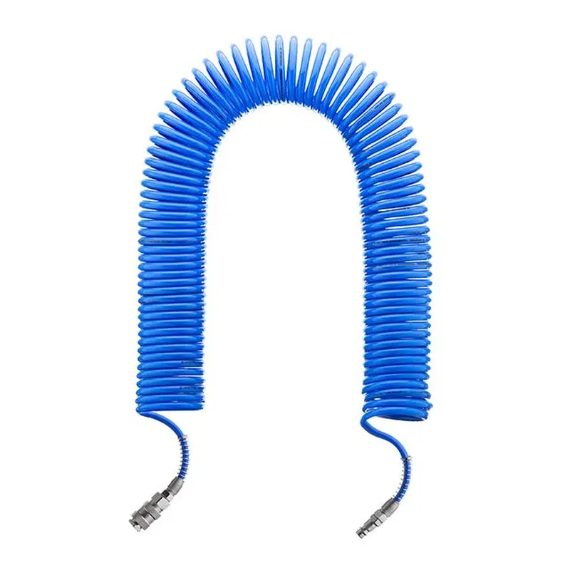 Шланг дуже гнучкий, здатен розтягуватись до 20 метрів під час роботи. Навіть під навантаженням він продовжує зберігати свою спіральну форму, тому вам не потрібно турбуватися про те, щоб скрутити його після закінчення роботи.