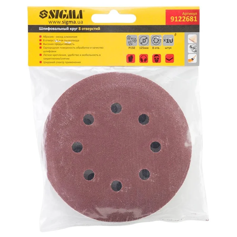 Шліфувальний круг 8 отворів Ø125мм P150 (10шт) SIGMA (9122681)