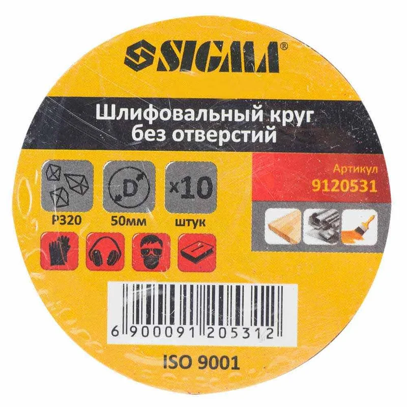 Шліфувальний круг без отворів Ø50мм P320 (10шт) SIGMA (9120531)