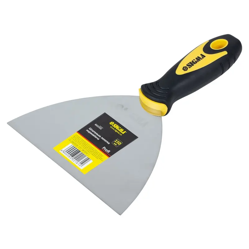 Шпательна лопатка нержавіюча Profi 150мм SIGMA (8322161) призначена для виконання штукатурно-оздоблювальних робіт: нанесення, вирівнювання, згладжування різноманітних будівельних розчинів на площині, а також для демонтажу шпалер, фарби і аналогічних матеріалів.