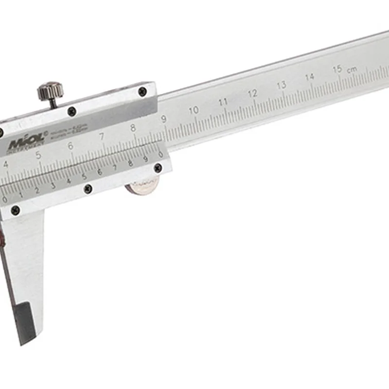 Штангенциркуль призначений для точного вимірювання зовнішніх та внутрішніх розмірів, а також глибин отворів. Виготовлений з вуглецевої сталі, має шкалу вимірювання в міліметрах (точність вимірювання — 0,02 мм). Поставляється в пластиковому кейсі