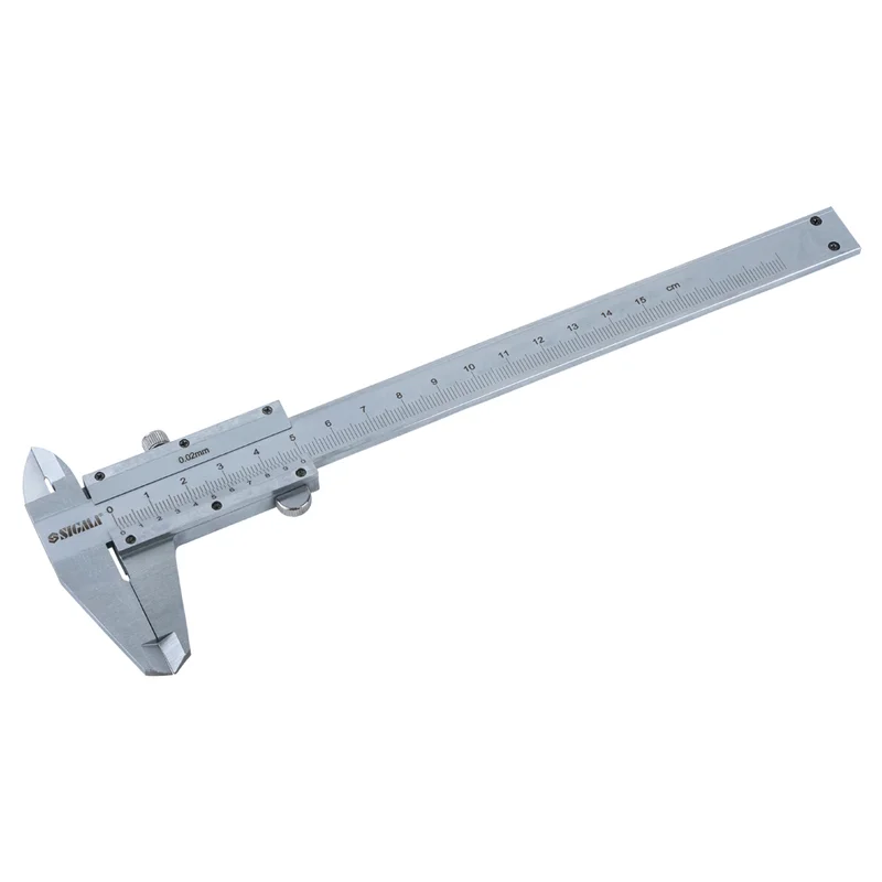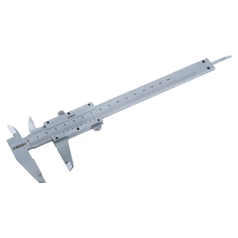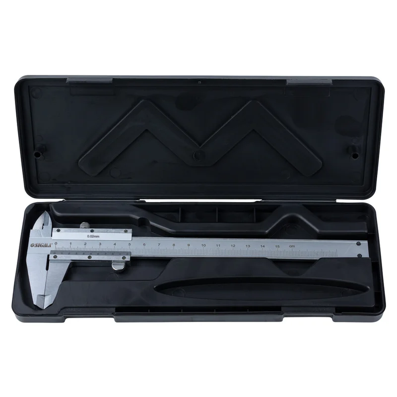Штангенциркуль механічний 150мм точність ±0.02мм (пенал) SIGMA (3922161) для проведення зовнішніх і внутрішніх вимірювань. Оснащений глибиноміром, має ціну ділення від 0.02мм.