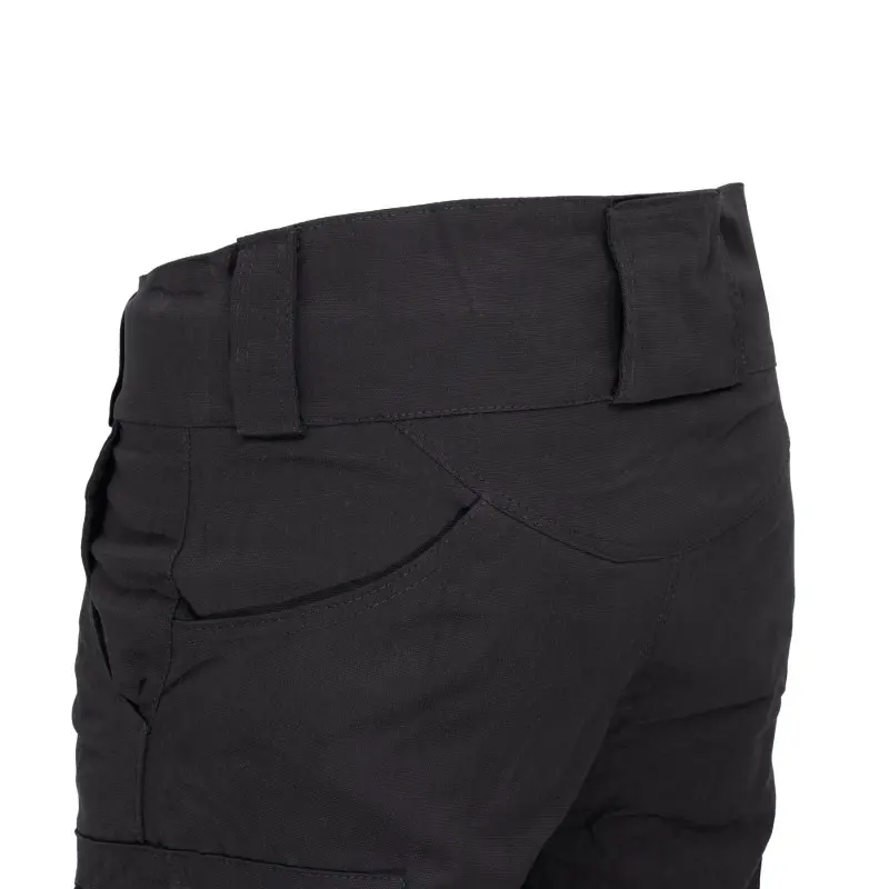 Високий пояс в районі попереку утримує штани під час присідання або іншої активності.