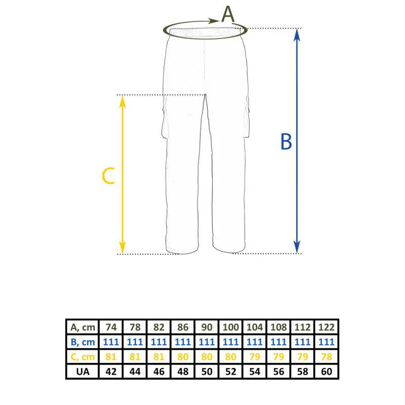 Кожна штанина має по дві липучки нижче колін для регулювання об'єму.