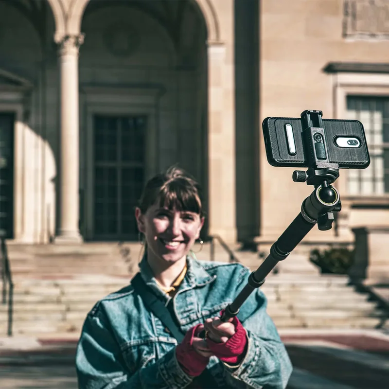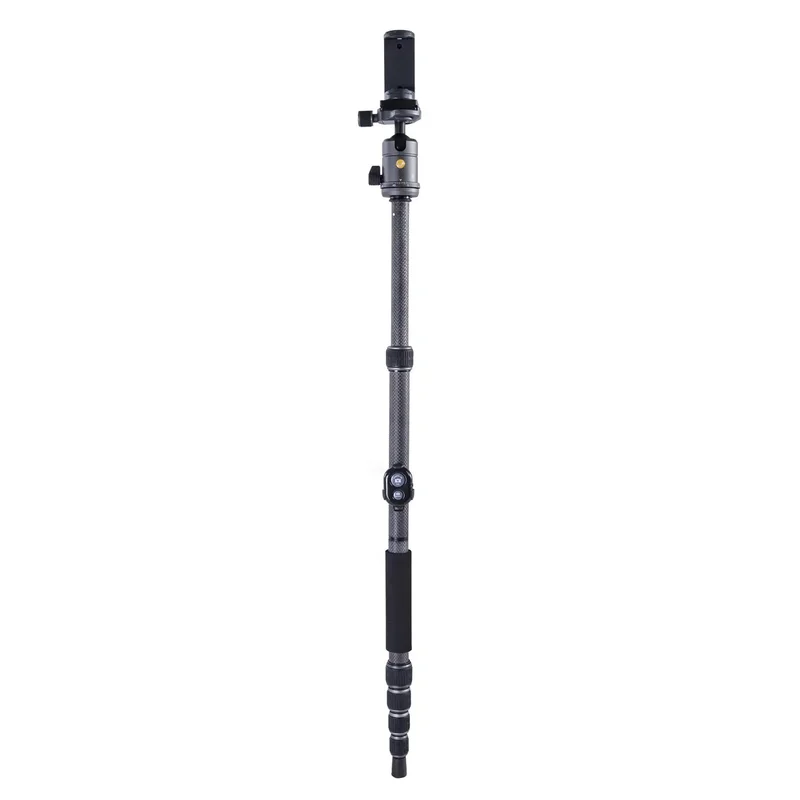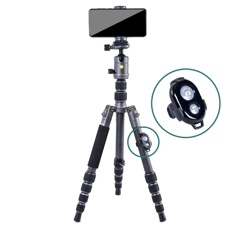 Якщо Ви хочете максимально використовувати можливості камери свого смартфона, цей штатив має адаптер для підключення будь-якого смартфона шириною до 87 мм. Для максимальної стабільності і використання монопода як селфі-палки, в комплекті є також дистанційний спусковий механізм для IOS і Android з інтерфейсом Bluetooth, тому немає необхідності торкатись телефона під час зйомки.