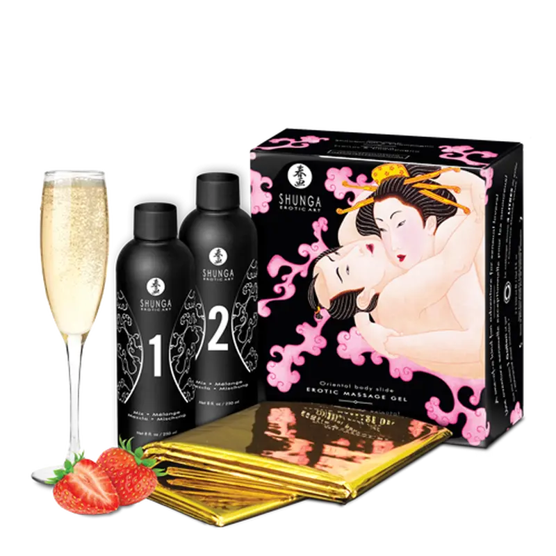 Набір для еротичного масажу Shunga Massage Gel Полуничне шампанське, 500 мл