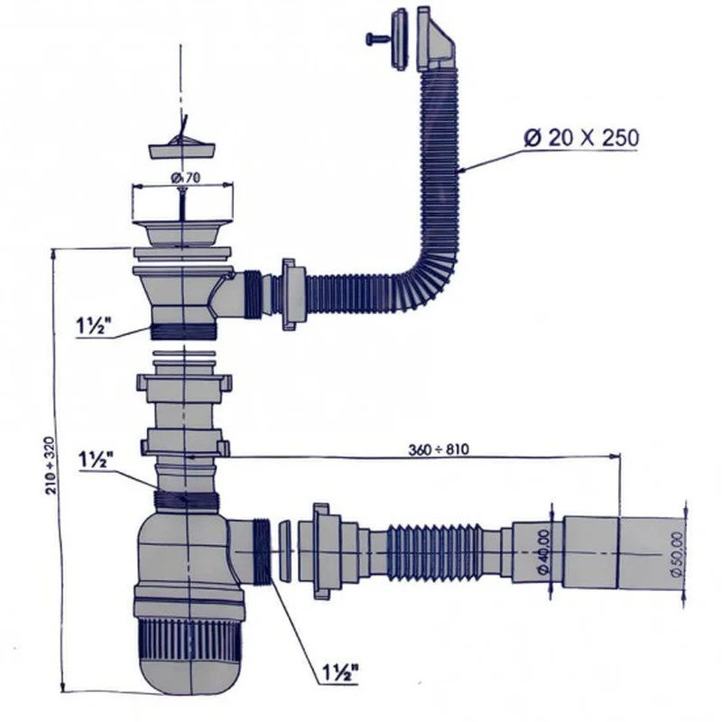 Характеристики сифона для мойки Bakimay PL1033 с переливом: