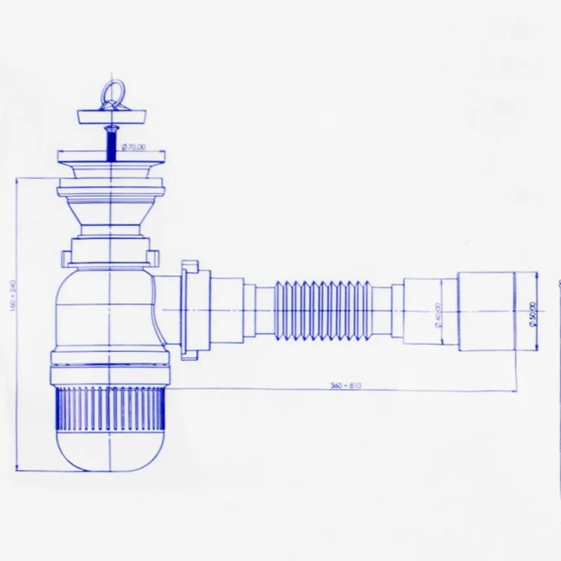 Купить сифон для мойки Bakimay PL1060 можно под разные планировки кухни. В нем изменяется высота и длина патрубков – с подключением к канализации не возникнет трудностей. Чтобы изделие было универсальным, в нем имеется выход на 50 и 40 мм.