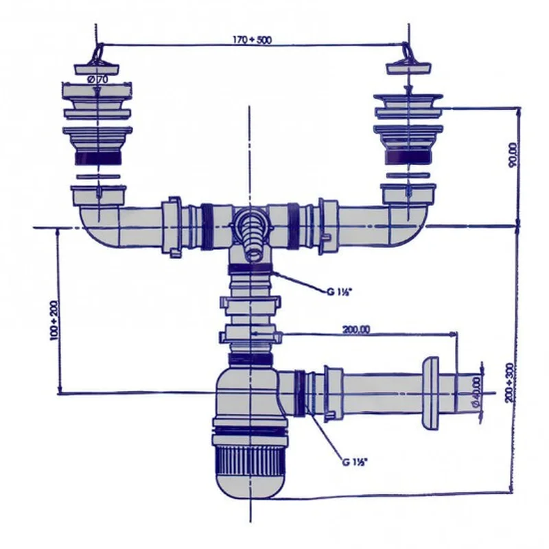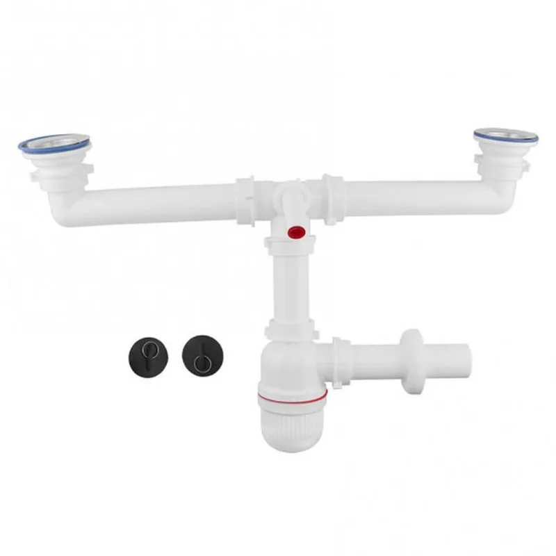 Сифон для мойки Bakimay PL1164 двойной имеет повышенную функциональность. Его можно устанавливать на раковины с двумя чашами, которые могут отличаться по размерам.