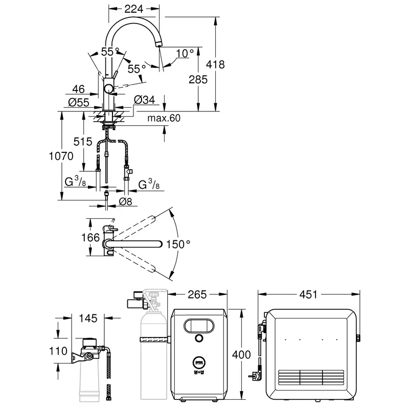 Охолоджувач GROHE Blue Professional забезпечує подачу 12 літрів охолодженої газованої води за годину.