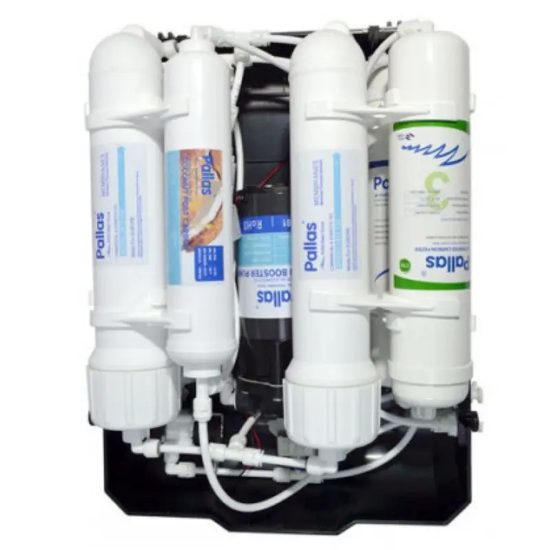 Система зворотного осмосу в закритому корпусі Pallas Slim забезпечує якісне очищення води, видаляючи всі шкідливі домішки: пестициди, хлорорганіку, іони важких металів, солі жорсткості, бактерії, віруси.
