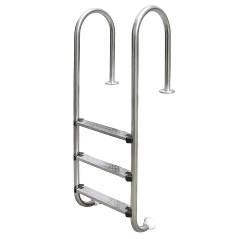 Сходи Emaux Muro MUF315-SR (3 сх.) призначені для зручного та безпечного спуску в басейн. Поручні і сходинки виготовлені з полірованої нержавіючої сталі марки AISI-304. Поручні кріпляться до борту за допомогою фланцевих з'єднань. Нижня частина сходів впирається в стіну басейну прогумованою заглушкою. Сходинки кріпляться до поручнів за допомогою болтів і мають протиковзкі накладки. У комплекті поставляються кріпильні елементи.