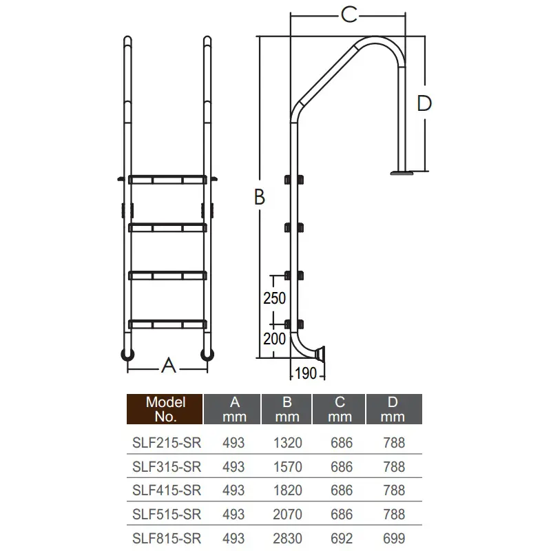 Сходи Emaux Standard SLF415-SR (4 сх.) призначені для зручного та безпечного спуску в басейн. Поручні і сходинки виготовлені з полірованої нержавіючої сталі марки AISI-304. Поручні кріпляться до борту за допомогою фланцевих з'єднань. Нижня частина сходів впирається в стіну басейну прогумованою заглушкою. Сходинки кріпляться до поручнів за допомогою болтів і мають протиковзкі накладки. У комплекті поставляються кріпильні елементи.