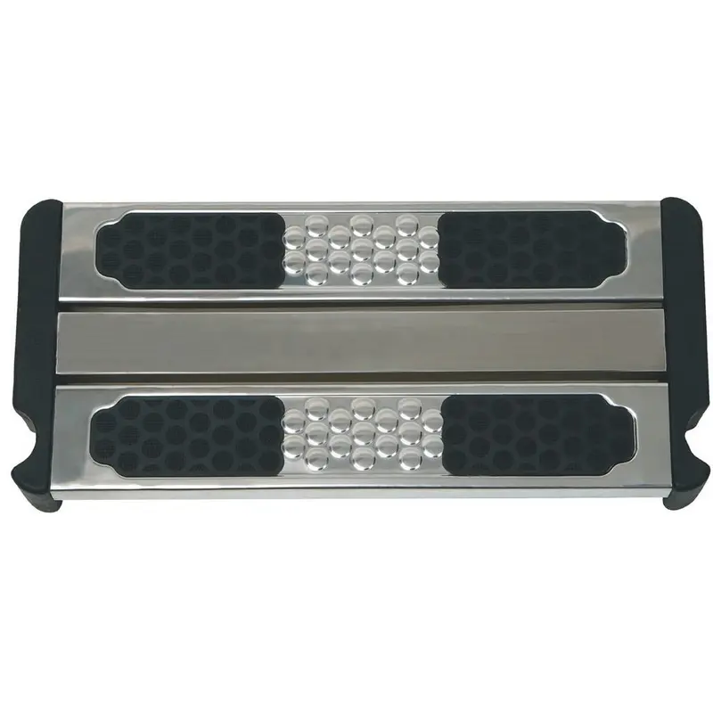 Широка сходинка для драбини Hayward. Виконана з нержавіючої сталі AISI 316, стійкої до корозії, впливу ультрафіолету та хімічних реагентів. Додатково можна придбати накладки на сходинки із протиковзким ефектом.