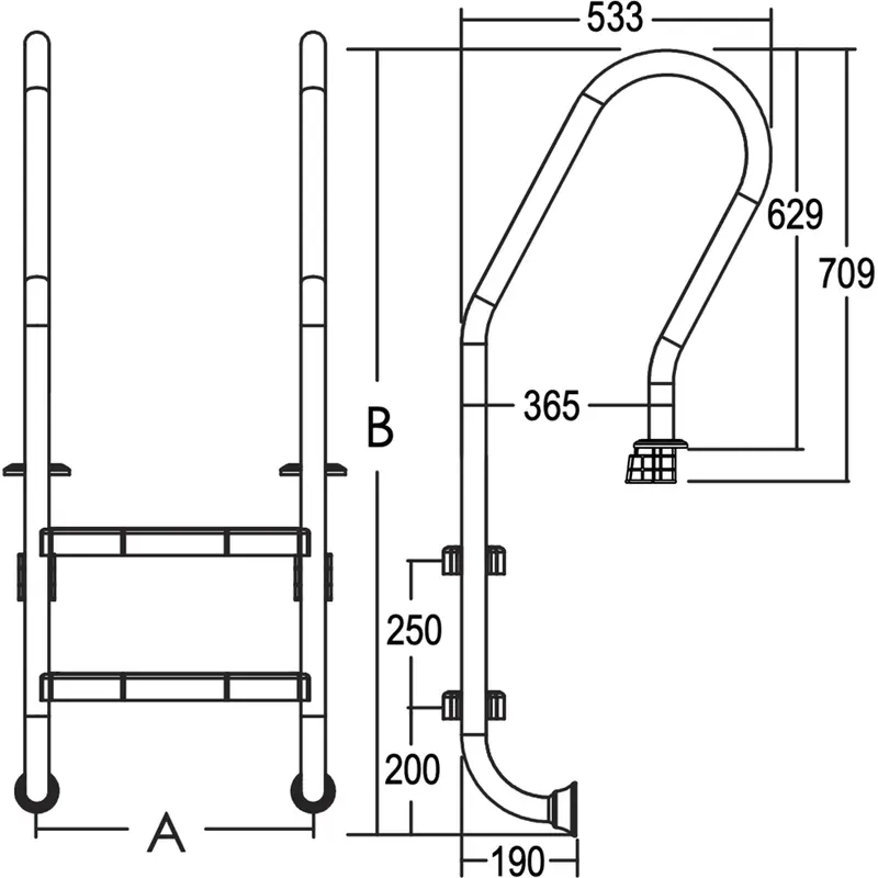Сходи Emaux NSF515-SR призначені для зручного і безпечного спуску в басейн. Поручні та сходи виготовлені з полірованої нержавіючої сталі марки AISI 316. Поручні кріпляться до борту за допомогою пластикових стаканів (анкерів). Нижня частина сходів упирається в стіну басейну прогумованою заглушкою. Сходинки кріпляться до поручнів за допомогою болтів. Сходи призначені для заглиблених басейнів. У комплекті поставляються кріпильні елементи.