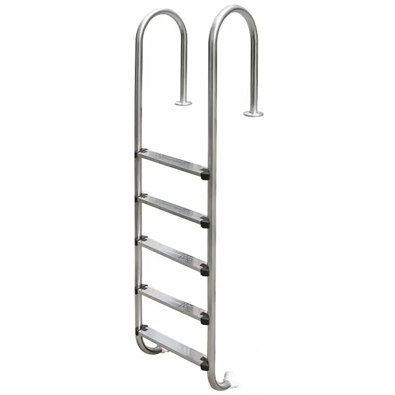 Сходи Emaux Muro MUF515-SR (5 сх.) призначені для зручного та безпечного спуску в басейн. Поручні і сходинки виготовлені з полірованої нержавіючої сталі марки AISI-304. Поручні кріпляться до борту за допомогою фланцевих з'єднань. Нижня частина сходів впирається в стіну басейну прогумованою заглушкою. Сходинки кріпляться до поручнів за допомогою болтів і мають протиковзкі накладки. У комплекті поставляються кріпильні елементи.