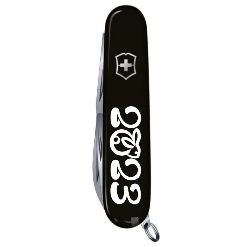Складаний швейцарський ніж SPARTAN 91 мм із колекції VICTORINOX ZODIAC, присвяченої Новому 2023 році, заступатиме якому буде Кролик. Чорні глянцеві накладки з якісним друком року та символу, а також логотипом компанії Victorinox. Ніж стане приємним і безперечно корисним подарунком на новорічні свята всім вашим знайомим та рідним «Кроликам».