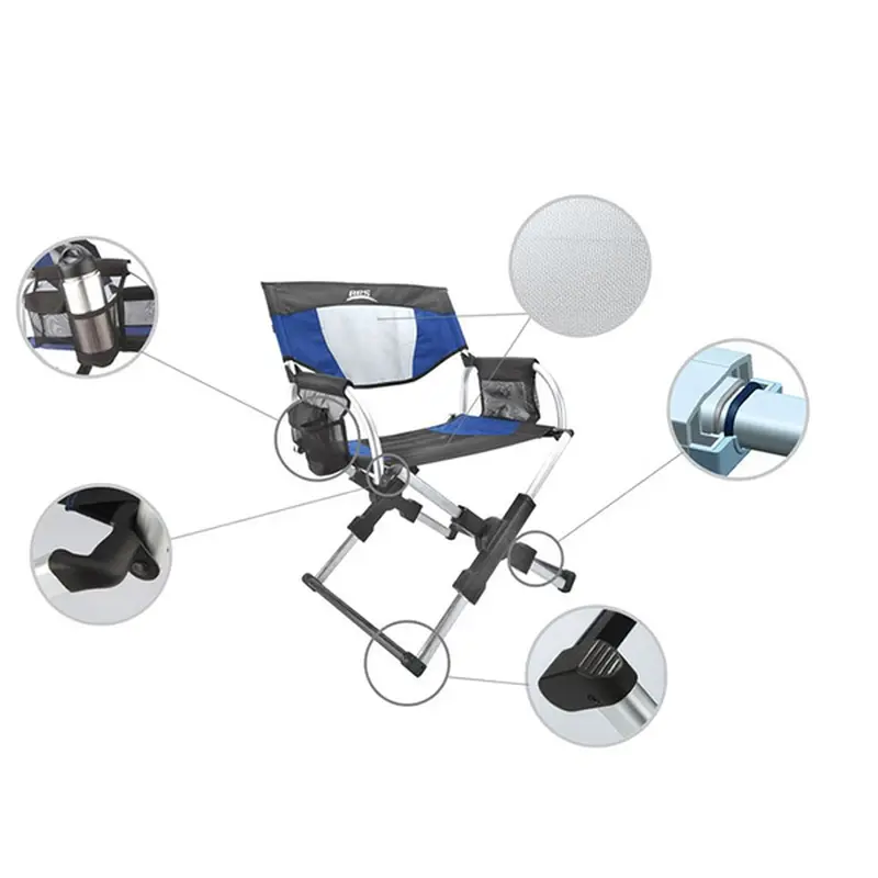 Виготовлений з високоміцної тканини Оксфорд (ПВХ 600*500D) і сітчастої тканини. Стілець міцний, стійкий до пошкоджень, у нього продумана конструкція, ергономічна і надійна. При цьому сам він невеликий, не займає багато місця навіть у розкладеному стані. Вага стільця становить 3,3 кілограма. Його габарити в складеному вигляді: 80*32*10 сантиметрів. В розкладеному вигляді: 82*56*50 сантиметрів. Зберігається стілець в сумці, звідки його можна швидко отримати та розкласти, не докладаючи великих зусиль.