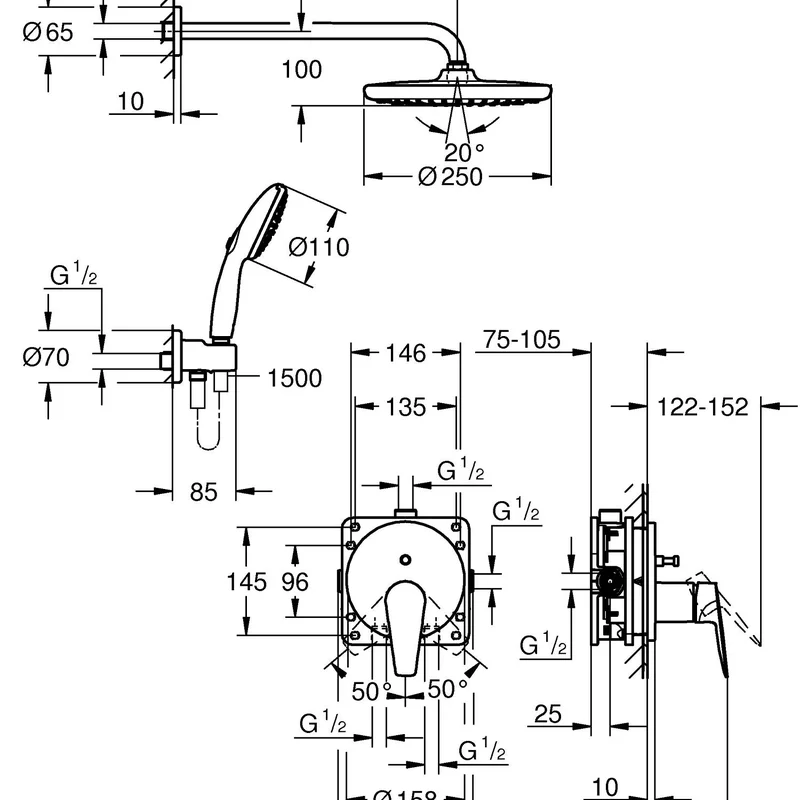 Скрытая душевая система Grohe BauEdge с Tempesta 250 (25290000)