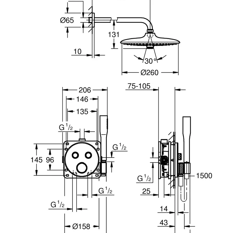 Скрытая душевая система с Euphoria 260 Grohe Grohtherm SmartControl (34867000)