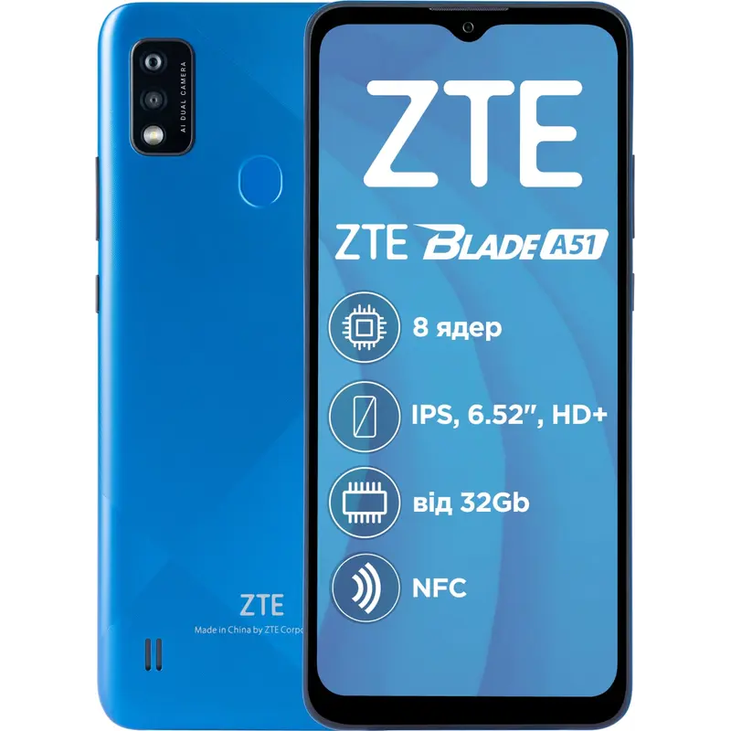 Смартфон ZTE Blade A51 2/32GB Dual Sim Blue