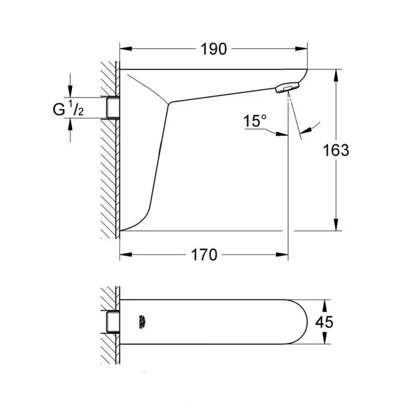 Смеситель бесконтактный для умывальника без смеш. настенный Grohe Euroeco Cosmopolitan E (36274000)