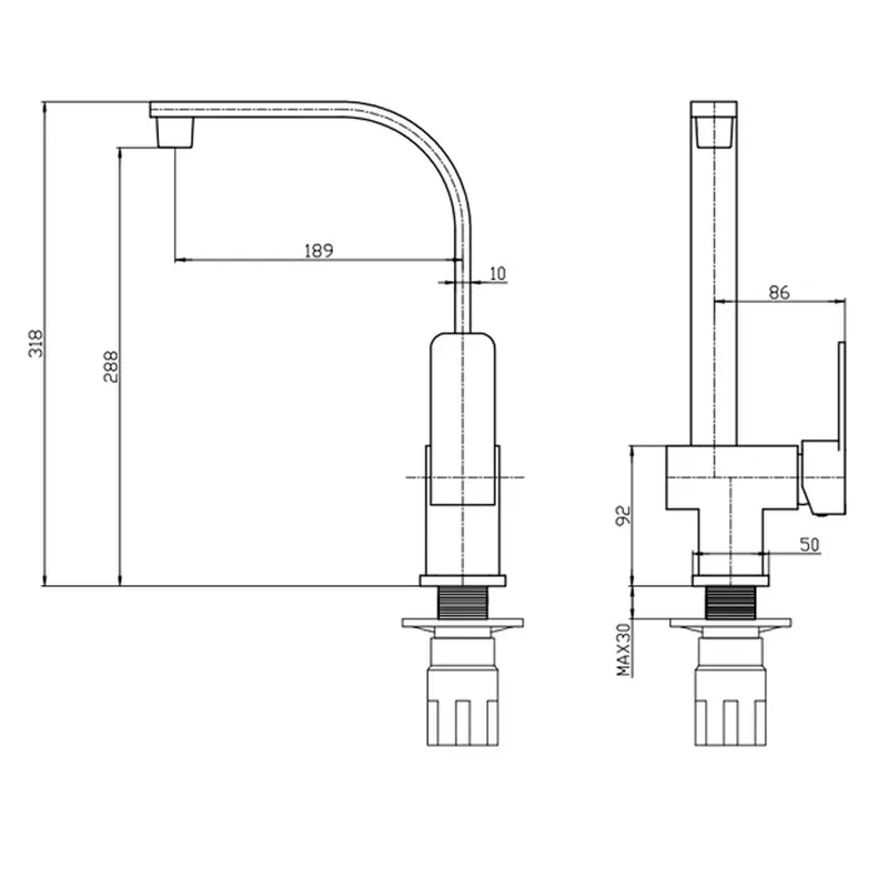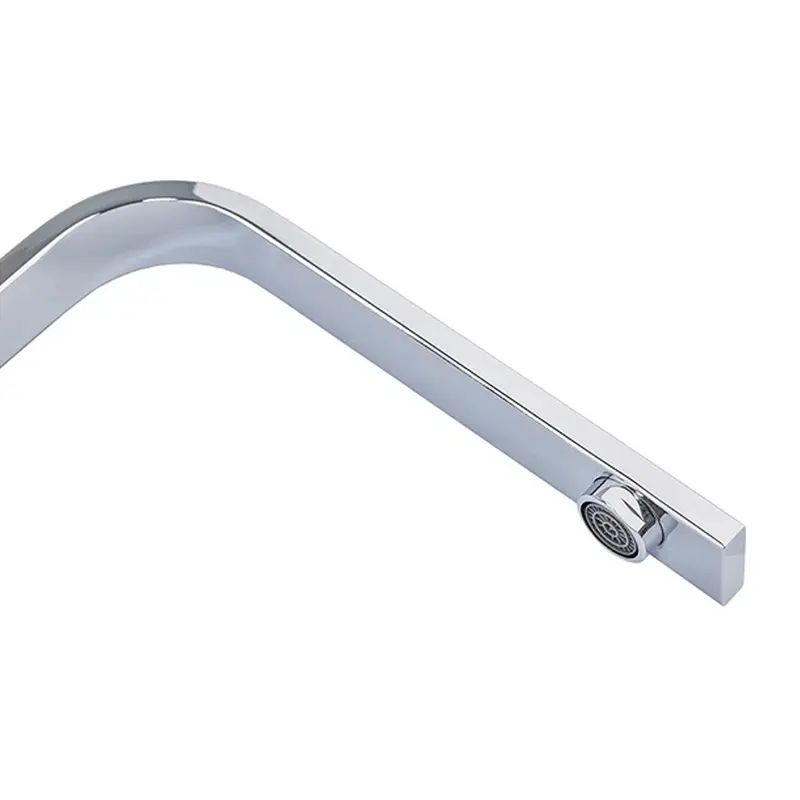Высокий излив позволяет удобно мыть большие кастрюли и сковороды, а также облегчает доступ к мойке.
