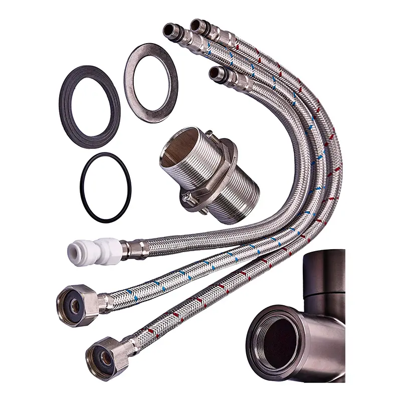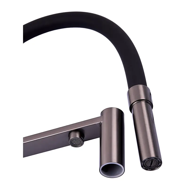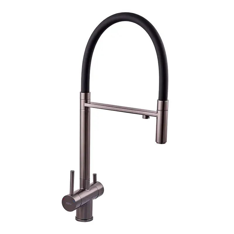 Смеситель для кухни с гибким изливом на две воды Zerix KIT-021 Graphite REFL.Black из нерж. стали (
