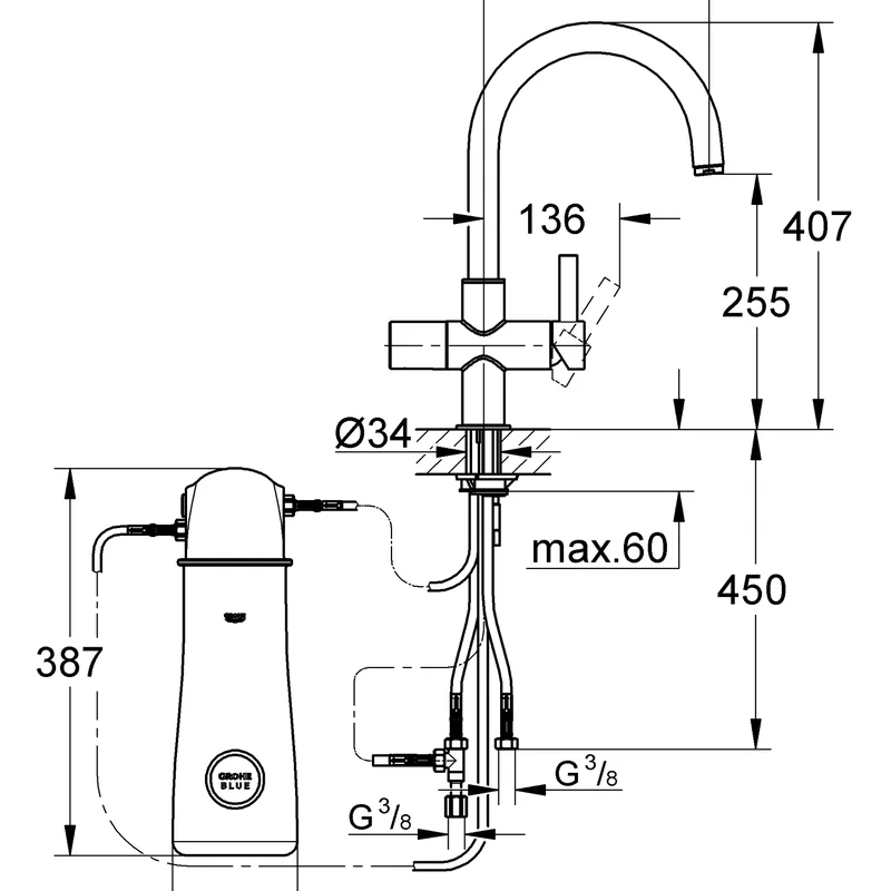 Смеситель для кухни с подключением к фильтру Grohe Blue Pure (33251000)