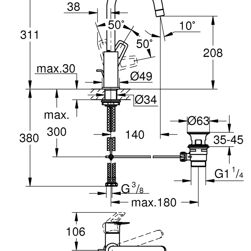 Смеситель для раковины L-размера Grohe BauLoop New (23763001)