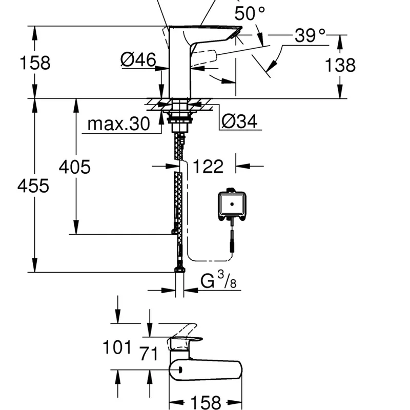 Смеситель для раковины с сенсорным управлением Grohe Eurosmart New (23975003)