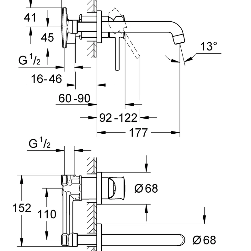 Смеситель для раковины скрытого монтажа Grohe BauClassic (20292000)