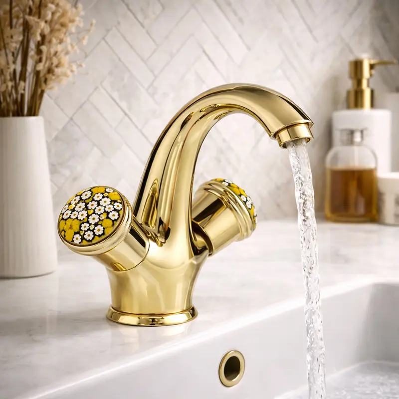 Смеситель для умывальника SANTAN MURRINE 186O0623 gold, с донным клапаном