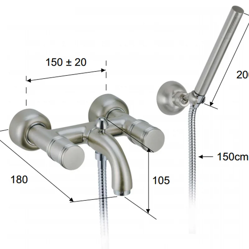 Смеситель для ванны и душа с гибким шлангом длиной 150 см.