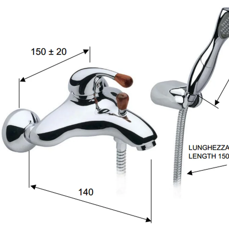Смеситель для ванны и душа с гибким шлангом длиной 150 см.