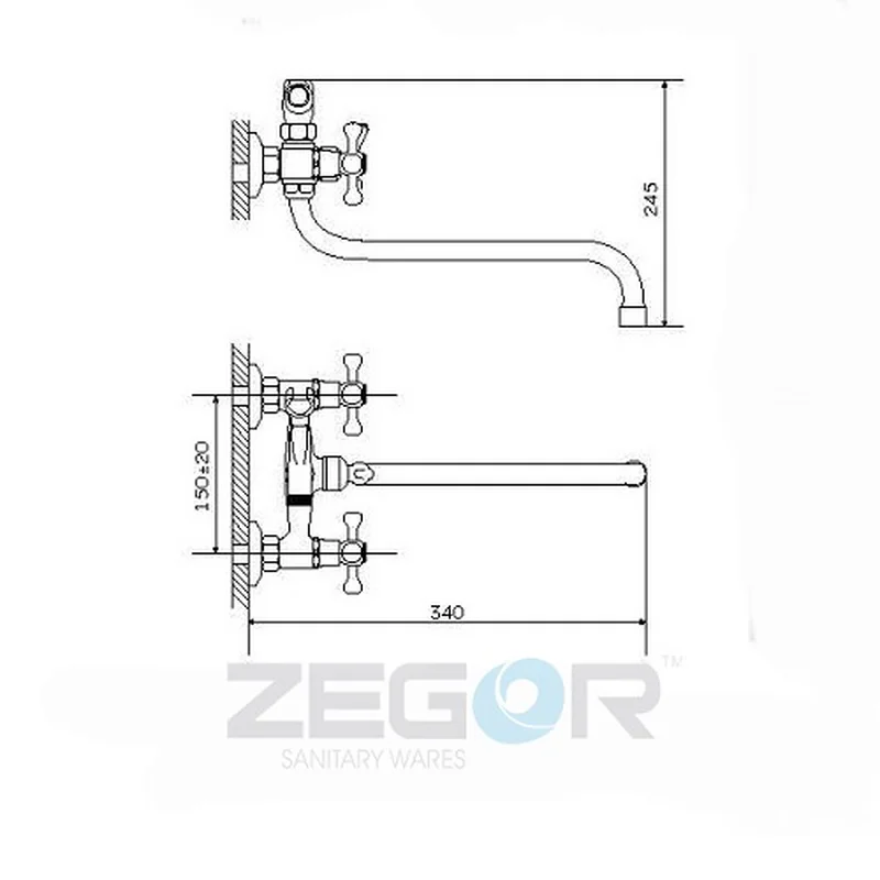 Смеситель для ванны ZEGOR DFR-A722, L=340