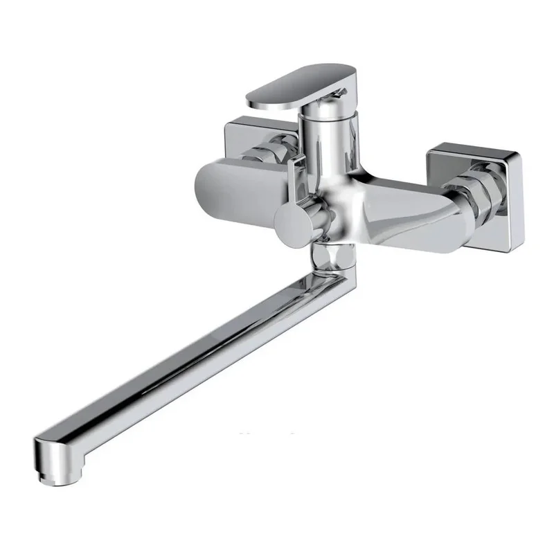 - Излив: Модель оснащена длинным поворотным изливом, что удобно для использования как в ванне, так и для наполнения ведер или других емкостей, расположенных рядом.