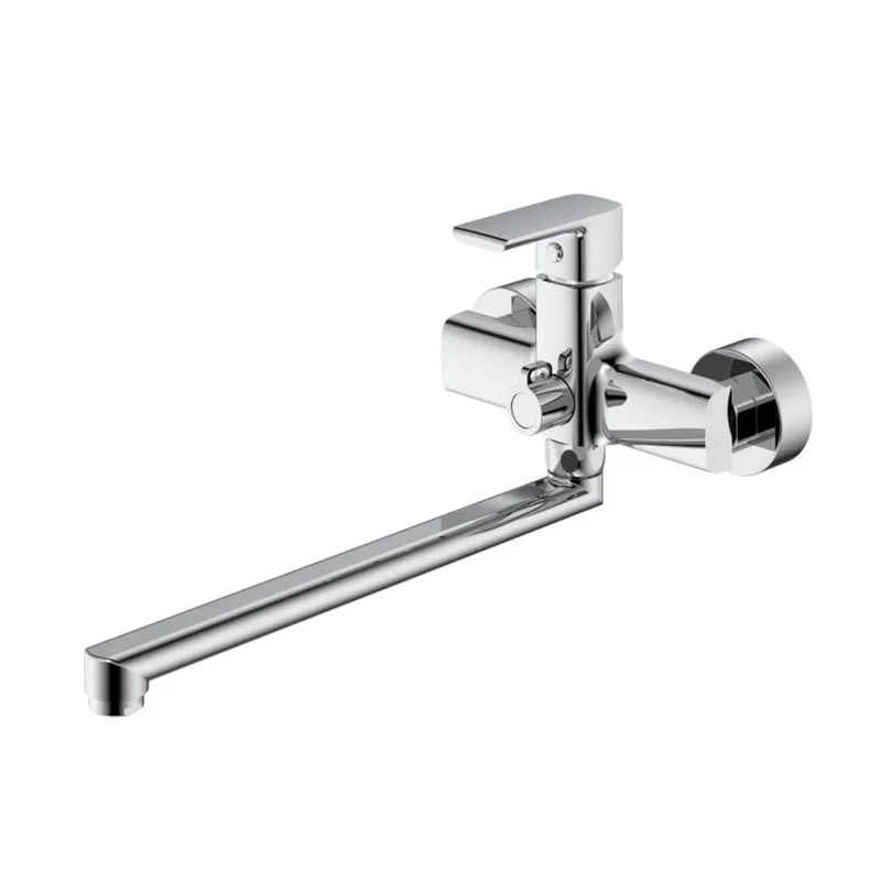 - Излив: Оснащен длинным поворотным изливом, что обеспечивает максимальное удобство и позволяет использовать смеситель для различных нужд в ванной комнате.