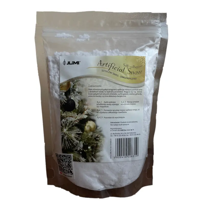 Штучний сніг - це прекрасне рішення, аби ваш різдвяний настрій був на висоті, незалежно від погоди за вікном. Сніговий ефект додасть особливого новорічного колориту штучному чи натуральному дереву, хвойним вінкам, гірляндам, штучним квітам чи іншим ялинковим прикрасам. Задекорувати обрану поверхню дуже легко, варто лише:1. Змочити поверхню водою (напр. за допомогою пульверизатора).2. Розкласти засіб на обраних місцях.3. Повторно змочити область нанесення снігу, поки вона не стане повністю вологою.4. Дати продукту висохнути.5. Отримувати задоволення від результату!