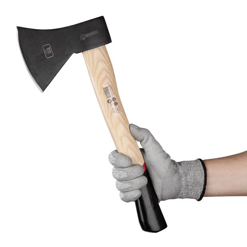 Зручний хват розподіляє навантаження та допомагає виконати значно більший обсяг робіт. Ручка сокири відполірована, покрита лаком для зручної роботи без задирок. Загальна вага сокири – 1 кг, вага обуха – 0,8 кг.
