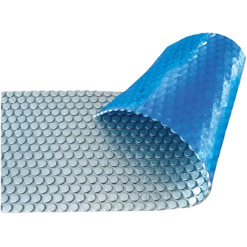 Двоколірна солярна плівка для басейнів. Покриття виготовлено з високоякісного міцного поліетилену низької щільності. Має повітряні камери для термоізоляції та сріблясте світловідбивне покриття. Матеріал стійкий до ультрафіолетового випромінювання, не боїться постійної вологості. Також плівка стійка до деформації та розриву завдяки особливій структурі волокна. Виконує теплозберігаючу, ізоляційну і захисну функції в басейні. Зменшує випаровування води, тепловтрати, розхід хімії та витрати на прибирання чаші басейну. Рівномірно розташовані повітряні камери утримують плівку на поверхні басейну. Рекомендується використовувати з намотувальним пристроєм. Плівка відпускається в метрах погонних кратно 0.5 метрам в довжину. Ціна вказана за 1 м². Матеріал: LPDE 500 мікронівШирина рулону: 300 смКолір: сріблястий/блакитний