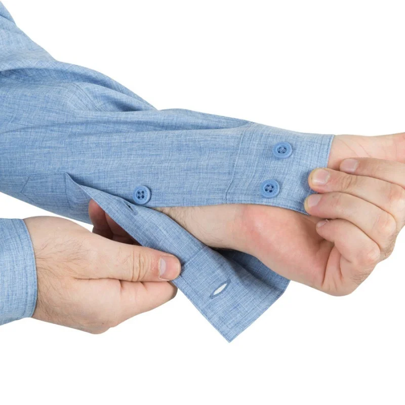 Helikon-Tex® DEFENDER Mk2 Gentleman Shirt - це тип сорочки, який буде гармонійно виглядати як з класичним костюмом, так і з джинсовими брюками. Легка еластична поліестерова тканина швидко сохне і забезпечує чудову повітропроникність, а індекс UPF30 означає надійний захист від ультрафіолетового випромінювання. Крій сорочки ідентичний класичної Defender Mk2. Сорочка застібається за допомогою гудзиків фірми Helikon-Tex®. На грудях розташовані дві кишені, які закриваються на Velcro. Під ними є додаткові плоскі кишені типу "Наполеон" на блискавках YKK®. Особливості: