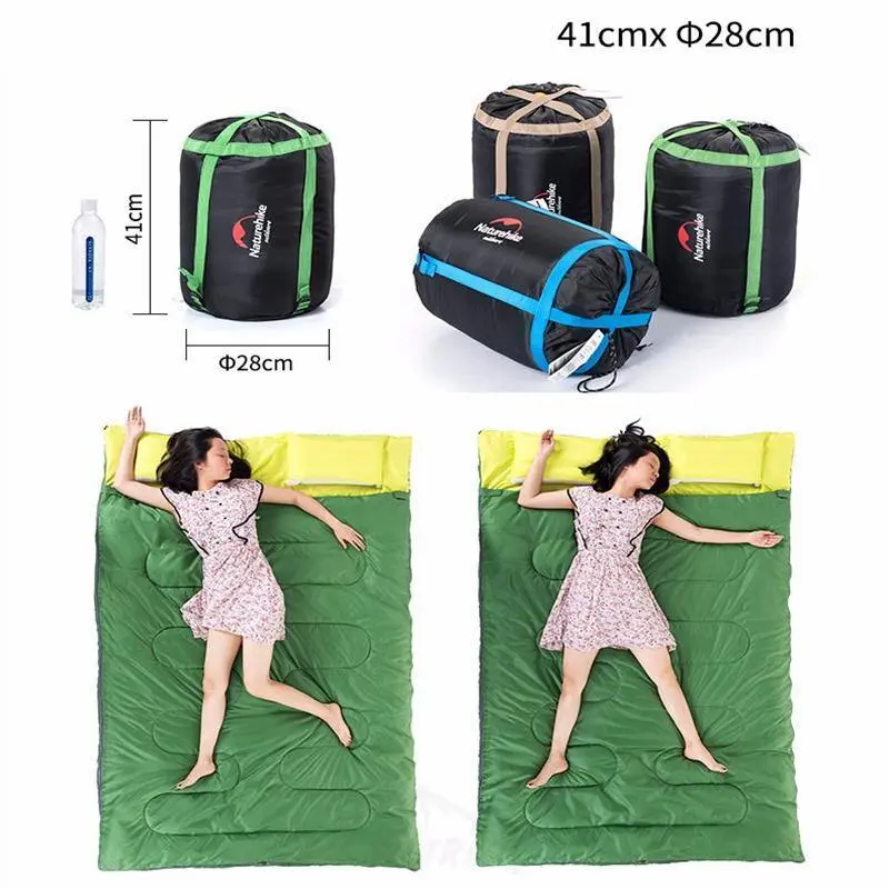 Спальник-ковдра Naturehike Double Sleeping Bag with Pillow-зручний практичний і затишний двомісний спальний мішок можна розстелити на траві для пікніка або затишно виспатися разом. Компресійний мішок в комплекті дозволяє зменшити розміри при транспортуванні. Для зручності є двостороння подвійна застібка-блискавка.