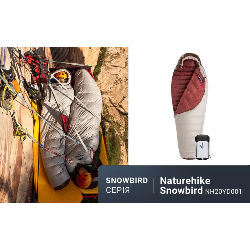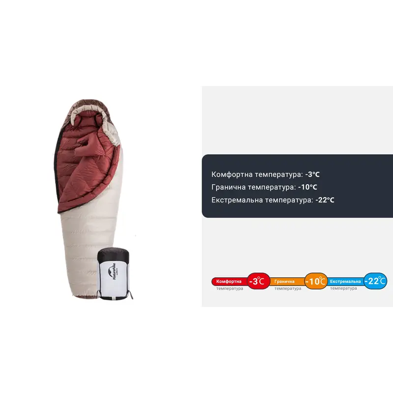 Спальник з натуральним пухом Naturehike Snowbird NH20YD001, p-р L, коричневий 720 г