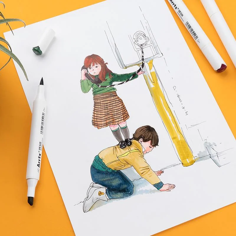 80 яскравих кольорів: яскраві і насичені маркери з високим ступенем пігментації зберігають відтінок і добре розтушовують, додаючи об"ємності ваших робіт. 80 сумісних квітів можуть задовольнити всі ваші потреби, включаючи виділення, рендеринг, начерки, ілюстрації, дизайн і багато іншого з зпрекраснимі деталями. Дизайнерська упаковка: модна сумка для маркерів, стильна і портативна. Пкстую сумку можна використовувати для зберігання. Чорнило на спиртовій основі: високоякісне чорнило на спиртовій основі бездоганно змішуються для досягнення гарних колірних ефектів навіть для початківців. Швидко висихають без плям і не залишають плям під час роботи. Набір оснащений палітрою кольорів, яка допоможе вам визначити і записати фактичний колір маркерів. Ручки-маркери з двома наконечниками: широкий наконечник долото і наконечник з тонким вістрям для точного виділення і підкреслення, для малювання тонкими і товстими лініями, обробки деталей і великого покриття області. Зверніть увагу: 1. Через особливих характеристик спиртових маркерів колір маркерів може трохи відрізнятися в залежності від типу використовуваної вами паперу, тому найкраще використовувати його на папері для маркерів. 2. Кращий спосіб відкрити маркери: акуратно відкрутіть ковпачок маркера замість того, щоб застосовувати силу для відкриття. 3. Щоб запобігти випаровування чорнила, закрийте ручку відразу після використання. 4. Щоб гарантувати ефективність спиртових маркерів, ці маркери необхідно зберігати в горизонтальному положенні. 5. Оскільки сітка трохи туга, струсіть її вліво і вправо, щоб полегшити витяг маркерів. Попередження про безпеку: не підходить для дітей віком до 3 років. Діти повинні використовувати маркери під наглядом дорослих. Не кладіть маркери на сонці. Тримайте в тіні. Комплектація: 80 маркерів. Сумка для зберігання і перенесення.